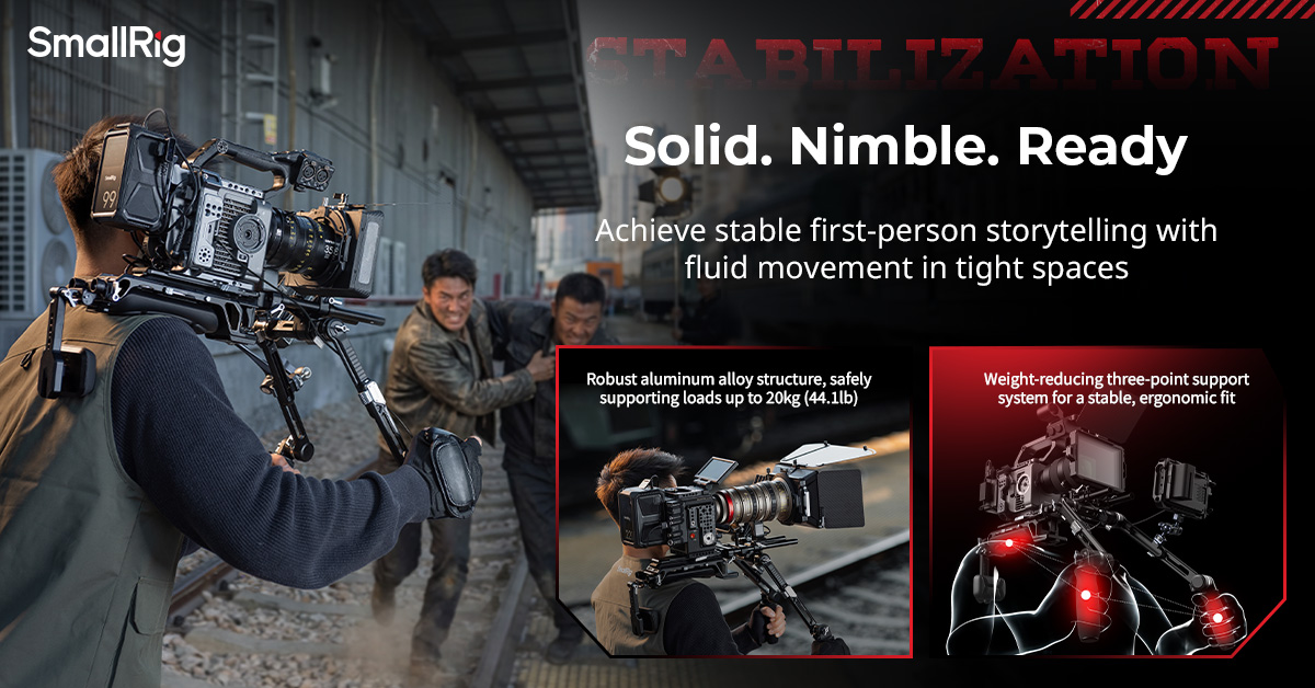 High Payload Capacity: With a robust 20kg (44lb) load capacity, this rig is perfect for first-person perspective filming with mid- to large-sized cinema cameras.